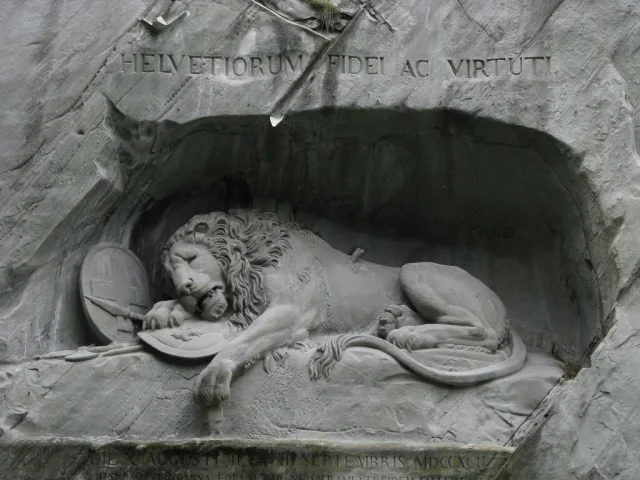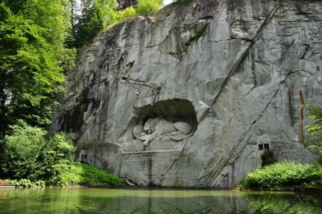 «Умирающий лев» — одна из главных достопримечательностей Швейцарии. На окраине Люцерна, в старом песчаниковом карьере, из скалы высечен умирающий царь зверей. Чётко видна рана от копья, а рядом — щит с гербом французской монархии. Монумент, созданный в 1820 году, достигает 10 метров в длину и 6 метров в высоту.