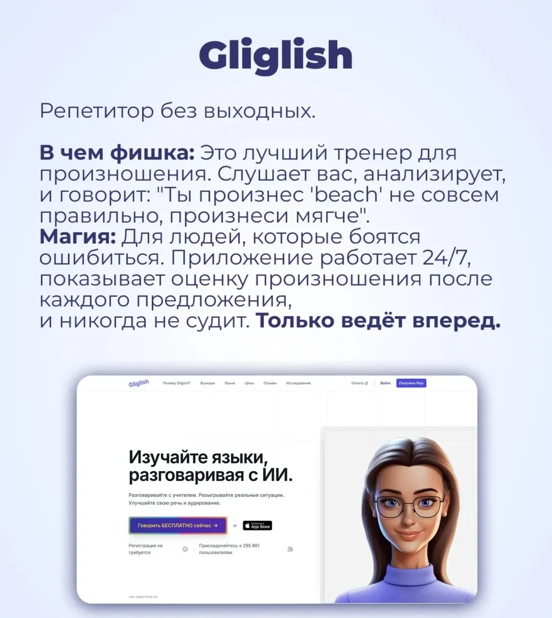 Gliglish — идеальный тренер по произношению