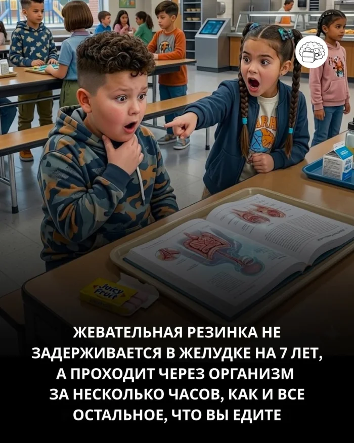 Жвачка якобы остаётся в желудке на 7 лет.