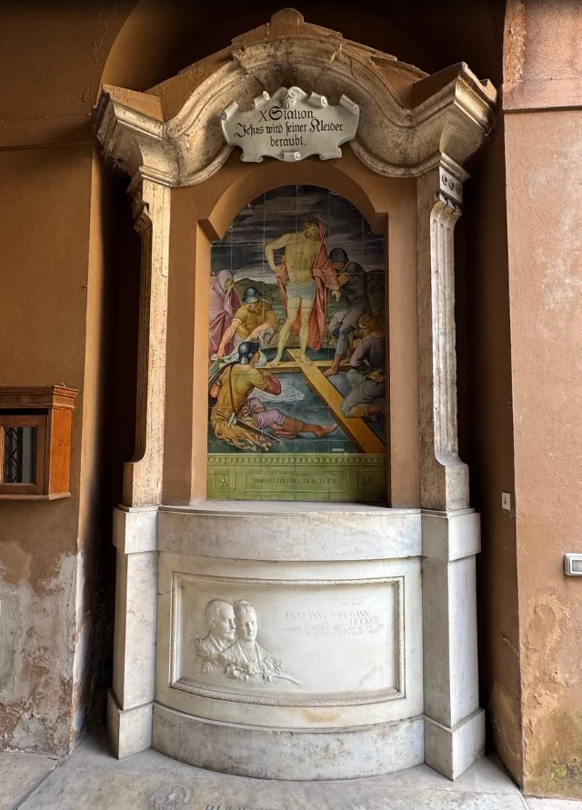 На территории Тевтонского кладбища расположена уникальная серия из 14 художественных сцен, посвящённых Страстям Христовым — от суда над Иисусом до распятия и погребения. Композиции выстроены в хронологическом порядке и читаются против часовой стрелки, формируя единый драматический цикл.