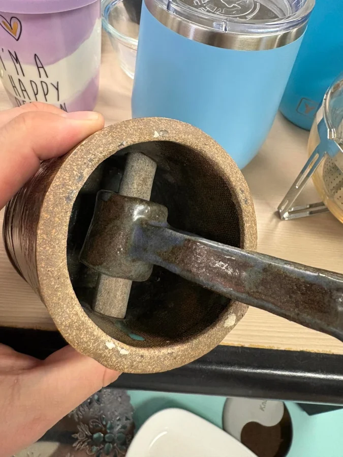 12. Керамический агрегат с чашкой, которая качается на двузубой рукоятке