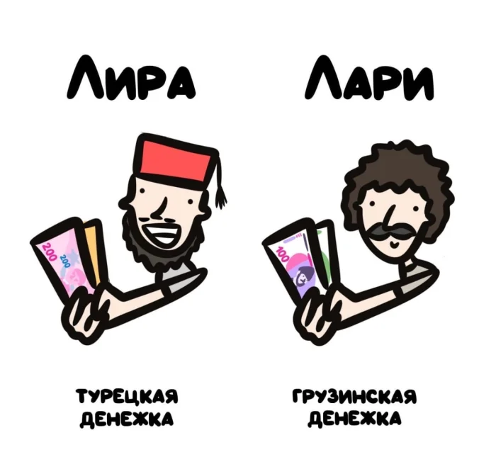тогда уж турецкая лира и итальянская, английский фунт и египетский, российский рубль и белорусский