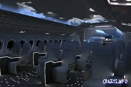 Компания Airbus начала сотрудничать с BMW, который в свою очередь сделали достаточно эффектную версию самолета. Например можно запрограммировать чтобы на потолку самолета были небо и звезды. В начале самолета есть купол, который значительно расширяет пространство в самолете.