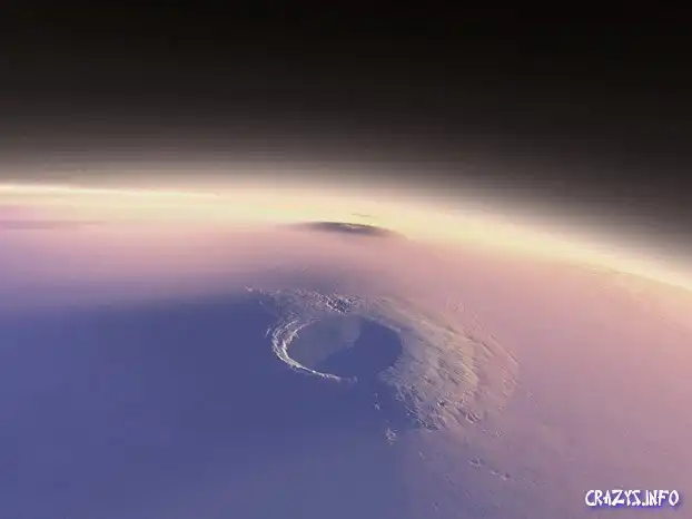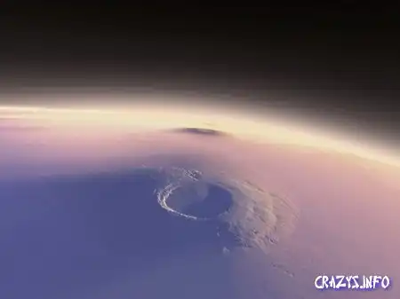 Вид на Элбу Пейтра после пылевой бури. Это самый большой вулкан на Марсе, который имеет приблизительно 1600 км в поперечнике. Несмотря на свой размер он достаточно плоский. Элба имеет высоту только ~3 км.