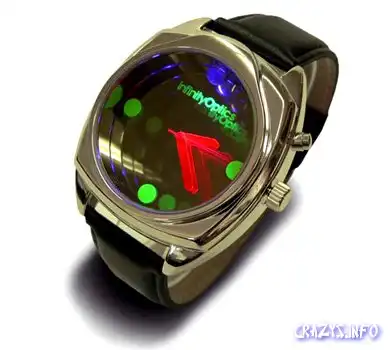 Часы Infinity Optic’s Ultra-Violet это как бы оптическая иллюзия. Вы видите одно и тоже отражение множество раз, благодаря специально расположенным зеркалам и стрелкам, покрытм электролюмминисцентным составом.