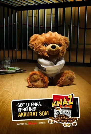 Как и в русском языке, в английском слово «сладкий» означает не только вкусовое ощущение от продукта, но и такое понимание как сентиментальный и ласковый. Именно на этом основна творческая идея агентства — снеки Knaz «Сладкие снаружи, но внутри них — орехи» (Sweet outside, Nuts Inside).
