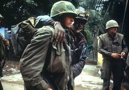 Санитар Вернон Вайк оказывает помощь раненому другу.