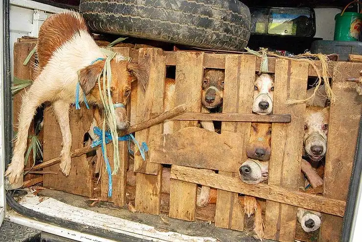 В филлипинском городе Багио полиция и инспекция по охране животных постоянно охотятся за продавцами собак для местных ресторанов. Продажа собачьего мяса официально запрещена, но на Филлипинах существуют десятки заведений, где готовят блюда из дворняжек. Фотограф Reuters стал свидетелем задержания владельца автомобиля, в котором перевозили предназначенных на убой собак.