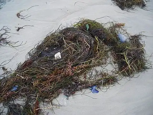 Это не медуза как ошибочно называют ее заападные путеводители (blue jellyfish). Это сифонофор - близкий к медузам беспозвоночный организм.