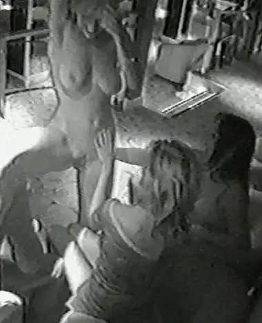 Охранники заведения передали в прессу фотографии, сделанные камерой наблюдения; на снимках видно, как звезда откровенно заигрывает с белокурой стриптизершей...