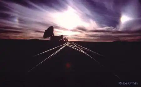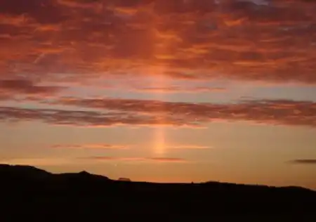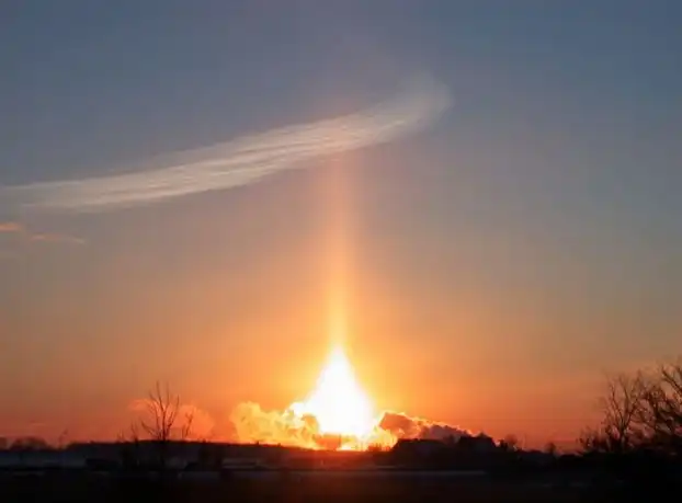 В большинстве мест на Земле удачливый наблюдатель может увидеть солнечные столбы - светящиеся колонны, которые кажутся выходящими из Солнца. Они образуются, когда плоские падающие кристаллы льда отражают солнечный свет в верхних слоях атмосферы. Обычно эти ледяные кристаллы испаряются, не достигнув земли. Однако, при отрицательной температуре, плоские падающие кристаллы льда могут образоваться около земли в форме легкого снега, иногда известного как ледяной туман. Тогда эти кристаллы льда могут отражать наземные огни, образуя колонны, похожие на солнечные столбы.