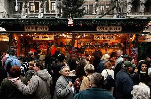 От обилия конфет, пирожных и выпечки разбегаются глаза, а рядом наливают немецкий рождественский напиток - глинтвейн. Кружка с горячим пряным вином пахнет апельсинами и корицей, обжигает руки даже сквозь перчатки, глотнешь - и по телу разливается приятное тепло. В Германии глинтвейн настолько популярен, что в продаже появились пакетики с растворимым напитком - надо только развести порошок вином. Но такой глинтвейн, конечно, не сравнить с настоящим, да еще выпитым на морозе.
