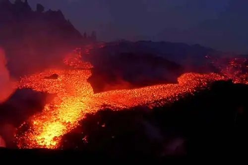 Ее сила, по оценкам ученых, была вполне достаточна, чтобы смыть целый город. Мощное извержение вулкана Этна, например, произошло в ночь на 2 декабря Сицилии. Из северного кратера, расположенного на высоте 2750 метров над уровнем моря, фонтаны жидкой магмы взлетали на высоту 300-400 метров.