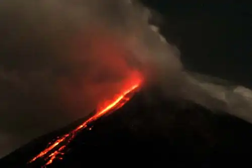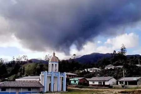 Во время извержения и даже до него небо становится темным от пепла, дыма и пыли, как в бурю: этот снимок был сделан в августе 2004 г. в Санта-Барбаре, Колумбия. Правительство этой страны в страхе объявило эвакуацию.