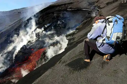 Извержения Этны происходят на протяжении сотен тысяч лет. Иногда этот вулкан выбрасывает фонтаны лавы высотой до километра и выше. Этна - не только один из самых активных вулканов планеты, он также один из самых больших. Длина его основания превышает 50 км, а высота достигает 3 км.