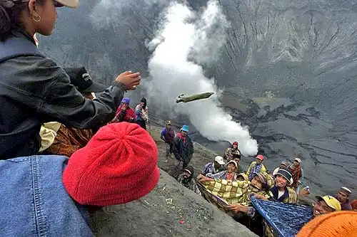 А индонезийцы, живущие у горы Бромо, которую мы уже видели, изобрели целый праздник, во время которого собирают вулканические «бомбы», выброшенные «духом горы». Эти находки, как они верят, приносят счастье.