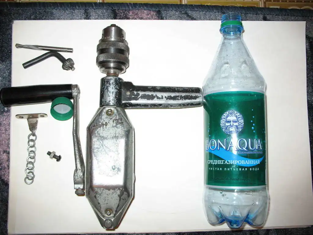 После того как все необходимые запчасти будущего штатива заготовлены, можно приступать к сборке изделия. Для этого шилом в центре пробки нужно наметить отверстие и просверлить его при помощи подходящего по диаметру сверла. “Подходящий” в данном случае означает такое отверстие, в которое свободно проходит резьбовая часть болта, приготовленного для штатива. Кстати, если сверла под рукой не окажется, отверстие можно “прокрутить” с помощью острого кончика перочинного ножа – получится не так аккуратно, как сверлом, но на функциональности устройства это никак не скажется.