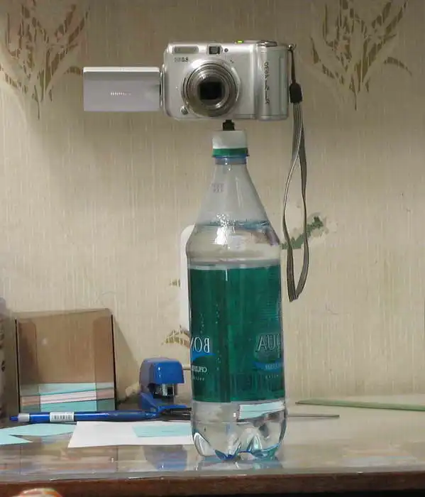 Получившаяся конструкция может быть закреплена на любой бутылке с прохладительным напитком, недостатка в которых нет на всякой вечеринке. Нужно только следить, чтобы уровень жидкости в сосуде был достаточен, иначе цифровая камера может запросто опрокинуться вместе с содержимым бутыли. Большой плюс конструкции в том, что места микроштатив практически не занимает, ну, а чтобы уж точно всегда иметь его под рукой, нужно в крышке сделать небольшое дополнительное отверстие и при помощи продетой в него лески или бечевки привязать “вспомогательное оборудование” к самому цифровику. Теперь можно отправляться на прогулку по ночному городу или наслаждаться отдыхом в кругу друзей, зная, что фотоаппарат всегда сможет занять устойчивое положение и обеспечить прекрасные снимки как ночных пейзажей, так и веселых компаний в полном составе, включая даже и самого фотографа…