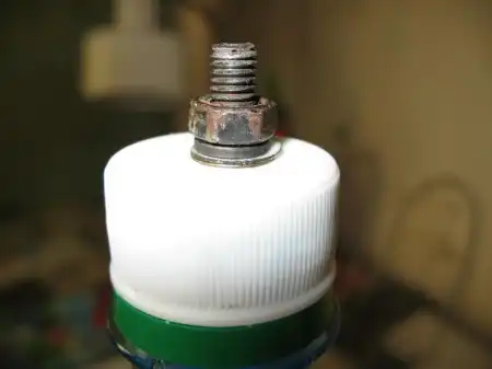 Далее на болт надеваются гровер-шайбы, болт вставляется в отверстие в крышке и закрепляется при помощи накрученной с другой стороны гайки. Затягивать соединение нужно достаточно сильно, чтобы болт был надежно закреплен в крышке и не покачивался при приложении усилия.