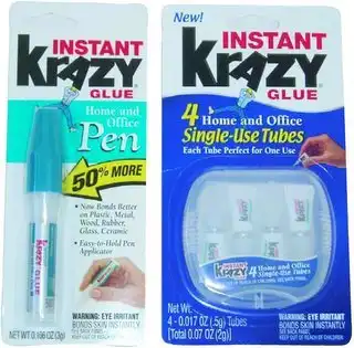 Суперклей, или Krazy Glue, это вещество, которое фактически называется "cyanoacrylate (цианоакрилат)" Его изобрел случайно доктор Гарри Кувер, который в лабораторных условиях во время Второй мировой войны (1942 год) проводил поиск прозрачного пластика для орудийных прицелов. Полученный цианоакрилат не решил его проблем, поскольку быстро твердел, клеился к чему попало и портил лабораторное оборудование.