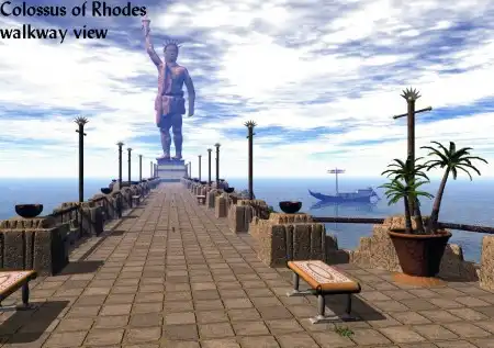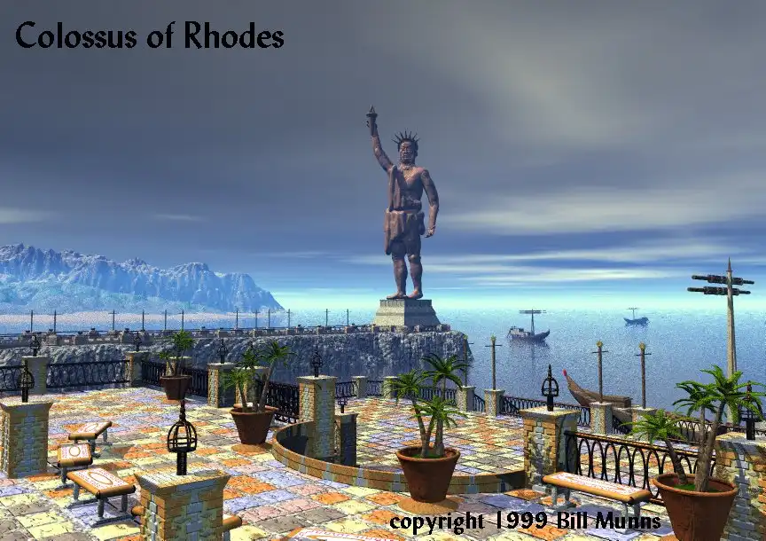 Двенадцать лет трудился скульптор Харес, ученик Лисиппа, над созданием почти 36-метрового бронзового гиганта. Когда работа над статуей была закончена, глазам пораженных родосцев предстал высокий и стройный юноша-бог с лучистым венцом на голове. Он стоял на белом мраморном постаменте, слегка отклонившись назад, и напряженно всматривался в даль. Статуя бога возвышалась прямо при входе в гавань Родоса и была видна подплывающим уже с соседних островов. В основе статуя была глиняной с металлическим каркасом, сверху отделана бронзовыми листами.