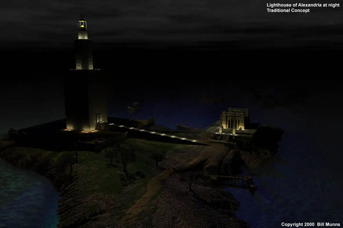 В III веке до н. э. был построен маяк, чтобы корабли могли благополучно миновать рифы на пути в александрийскую бухту. Ночью им помогало в этом отражение языков пламени, а днём — столб дыма. Это был первый в мире маяк, и простоял он 1500 лет.