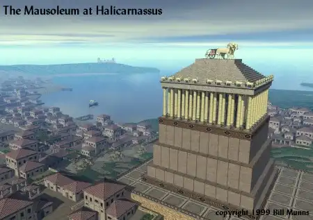 Галикарнасский мавзолей — надгробный памятник карийского царя Мавсола, сооружён в середине IV века до н. э. по приказу его супруги Артемизией II в Галикарнассе. Архитектура Мавзолея необычна для греческой архитектуры того времени: если классические эллинские храмы в плане прямоугольны и их высота не превышает длины фасада, то Мавзолей в плане почти квадратен, и его высота значительно превышала сторону основания.