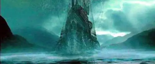 Магическая "подводная лодка". Этот эпизод был невероятно сложным. Проблема была в том, что в кадре компьютерная вода должна была взаимодействовать с компьютерными же парусами. Иначе говоря, движок симуляции жидкостей должен был одновременно работать с движком симуляции одежды, чего до этого момента ни разу не происходило!..