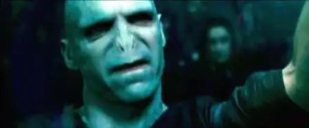 Волан-де-Морт... Его внешность была, в общем-то, стандартной: бледная с синевой кожа, лысая голова, тонкие костлявые пальцы, длинные ногти, змеиные глаза и зубы. Но кое-чем злодей из "Кубка огня" отличается от своих "собратьев" в остальных фильмах, и это отличие - отсутствие носа и наличие лишь тонких прорезей...