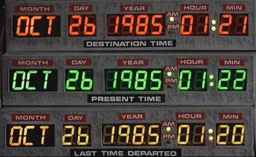 Цвета дисплея установки времени в машине времени (красный, зеленый, желтый) – отсылка к фильму «Машина времени» 1960го года, где использовались лампы тех же цветов.