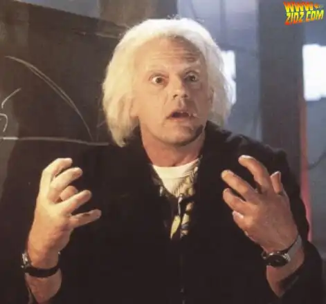 Док Браун всегда носит несколько наручных часов. Это особенно хорошо видно, когда он объясняет Марти, как работает машина времени. Эта привычка у него остается надолго, как показывает это фото из второй части.