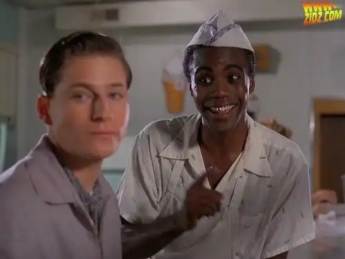 Бомж на скамейке, которого Марти называет «Рэд» - не бывший мэр Рэд Томас из 1955 года. Майкл Джей Фокс импровизировал в этой сцене. В сценарии этого имени не было.
