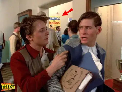 Когда Марти идут с Доком по школе, на заднем плане висит плакат «Bulldogs vs. Indians». «Bulldogs» была командой по амер. футболу начальной школы Боба Гейла, а «Indians» - средней школы.