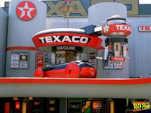 В 1955, 1985 и 2015 годах на площади перед судом есть автозаправка "Texaco".
