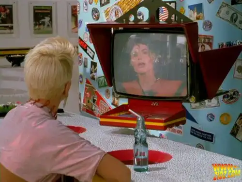 На мониторах в «Кафе 80-х» идут сериалы 80-х годов, причем все – компании Universal. В их числе: "The Smurfs" (мультфильмы), "Cheers" (ситком), "Family Ties" («Семейные узы» с Майклом Джей Фоксом!), "Taxi" («Такси» с Кристофером Ллойдом!), CNN, "Oprah Winfrey" (токшоу), "Geraldo" (токшоу), "Pee Wee’s Playhouse", "Wheel of Fortune" (аналог «Поля чудес»), "Miami Vice", "Magnum P.I.", "Dallas" (сериалы).