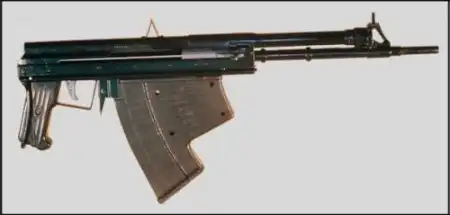 Прицельные приспособления – простейшей конструкции, включают в себя нерегулируемый открытый целик на ствольной коробке и мушку на газовой каморе. Приклад – телескопический, выдвижной, из стальной проволоки.