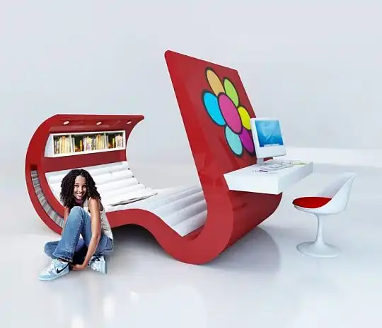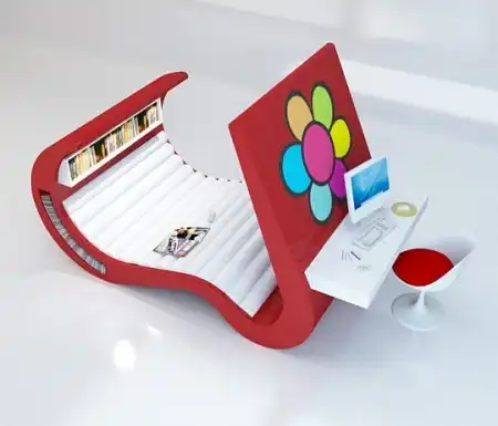 Бразильский дизайнер Роберта Рамме представила необычную концептуальную мебель, такую себе мебель будущего а-ля «все-в-одном», предназначенную для тинейджеров и молодежи. Интересна она тем, что по сути один предмет мебели объединяет в себе все, что нужно современному подростку: это и компьютерный стол для учебы и игр, и полка для книг или учебников, и импровизированный «диван», лежа на котором можно смотреть телевизор или DVD (которые тоже являются встроенными), слушать музыку или читать (подсветка тоже имеется). Выглядит все это довольно неплохо, но надеемся, дизайнер не предлагает детям на этом спать - это было бы слишком жестоко