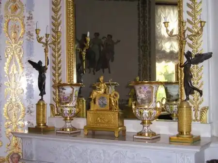 Великолепные вазы, мебель, настенные часы и скульптура - помимо шикарной обстановки залов каждый предмет дворцового интерьера - это произведение искусства. Роскошные залы дворца, созданные знаменитыми архитекторами Растрелли и Стасовым: Большой зал, воссозданная недавно Янтарная комната, Малиновая и Зеленая Столбовые, Зеленая столовая. Один из самых роскошных дворцов России.