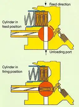 Ствол, ударно-спусковой механизм (за исключением предохранителя/переводчика и спускового крючка), поворотный казенник с механикой и магазин смонированы на едином основании, которое может двигаться назад и вперед внутри корпуса винтовки. При стрельбе одиночными или длинными очередями весь механизм совершает полный цикл отката-наката после каждого выстрела, чем обеспечивается снижение отдачи (аналогично артиллерийским системам). При стрельбе очередями в три выстрела подача патрона и его выстреливание производиятся сразу же после предыдущего, с темпом до 2000 выстрелов в минуту. При этом вся подвижная система приходит в крайне задне положение уже ПОСЛЕ третьего выстрела, при этом отдача начинает действовать на оружие и стрелка опять таки уже после завершения очереди, чем обеспечивается чрезвычайно высокая кучность стрельбы (аналогичное решение использовано в Российском автомате АН-94 "Абакан").