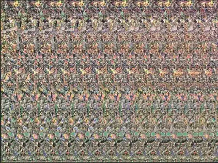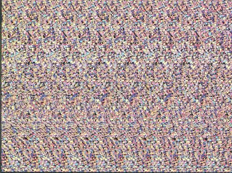 Если у вас не получилось по инструкции попробуйте следующее:приблизьте лицо ближе к экрану,постепенно удаляйтесь,не напрягая глаз.Картинку лучше увеличить.