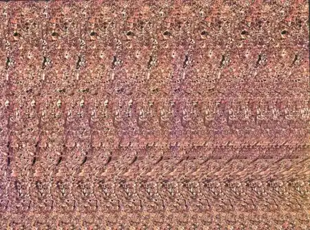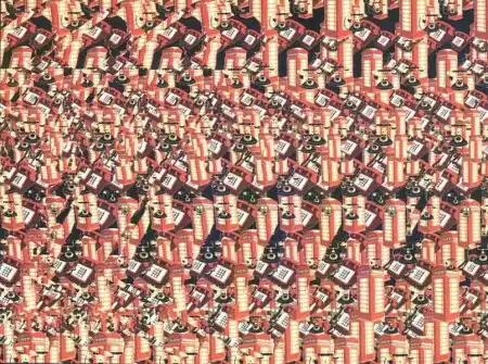 Сосредоточьте внимание на какой-нибудь точке узора и попытайтесь как бы раздвоить взгляд, осторожно переводя один глаз на любую точку соседнего узора. Когда четкие линии рисунка начнут расплываться, "смазывая" изображение, вы почувствуете, как оно раздвигается вглубь и вширь, открывая глазу невидимое ранее пространство.