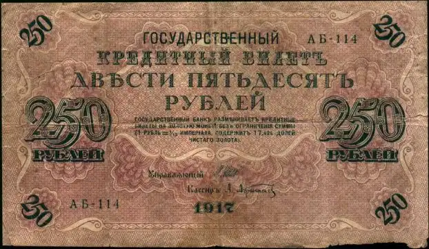 250 рублей, 1917 год, реальный размер 175*104 мм.