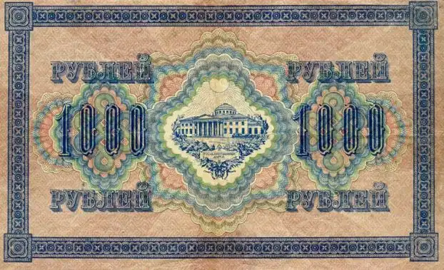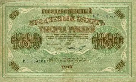 1000 рублей, 1917 год (выпускались до 1919), реальныый размер 212*132 мм.