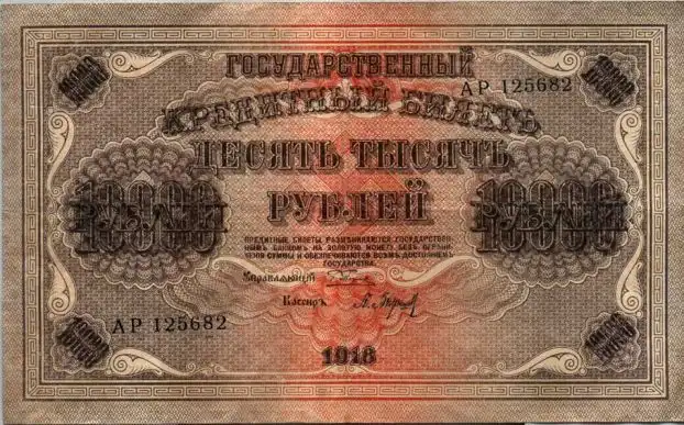 10000 рублей, 1918 год (выпускались до 1919), реальный размер 212*132