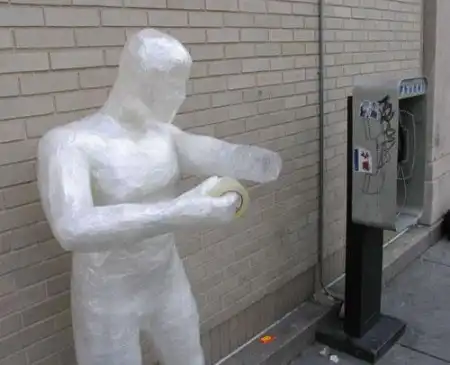 Технология изготовления очень проста - мастер обматывает клейкой лентой свою часть тела, разрезает — и фрагмент скульптуры готов.