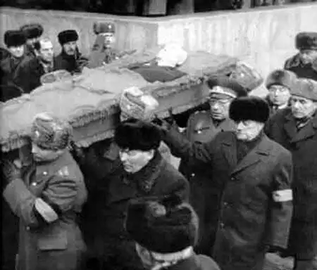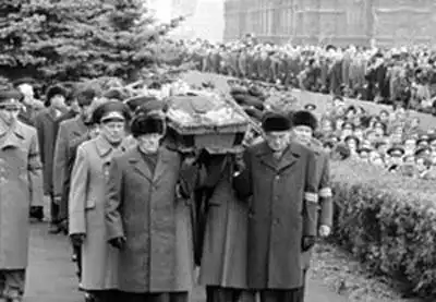 Политбюро встречало покойного, стоя на мавзолее... Похоронен Леонид Ильич у Кремлевской стены...