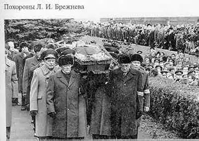 Автомобильный кортедж уже тогда был не роскошью, а средством передвижения... Церемонию погребения Брежнева показывали по центральному телевидению. И вся страна в прямом эфире наблюдала, как гроб с телом Леонида Ильча, когда его опускали в могилу, едва не опрокинулся - выскользнула одна из лент, поддерживающих гроб снизу.