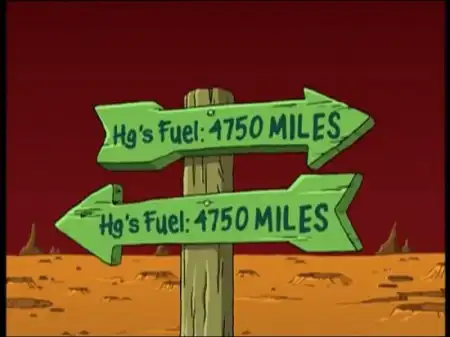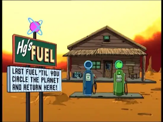 Когда Фрай и Эми в эпизоде 2ACV07 Put Your Head on My Shoulder катаются по Меркурию, у них кончается топливо в аккурат рядом со знаком «4750 миль до ближайшей заправки» в обе стороны. 4750 миль (примерно7645 километров) - действительная длина половины экватора Меркурия.