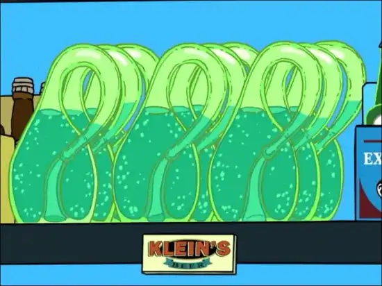 Обратите внимание на тару, в которую разливается пиво Klein's в эпизоде 3ACV12 The Route of All Evil. Данная форма называется «бутылкой Клейна» и являет собой трёхмерный аналог «лёнты Мёбиуса» - двумерной фигуры с одной поверхностью. Точно так же бутылка Клейна, открывающаяся в собственное донышко имеет по сути объединённые внешнюю и внутреннюю поверхности. Немудрено, что столь примечательная форма привлекла в будущем пивоваренную промышленность, удостоившую этот геометрический курьёз специальной марки пива.