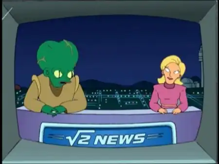 В некоторых эпизодах появляется новостной телеканал «Корень из двух». (Впервые его видим в эпизоде 1ACV08 A Big Piece of Garbage, затем в эпизоде 2ACV03 A Head in the Polls).